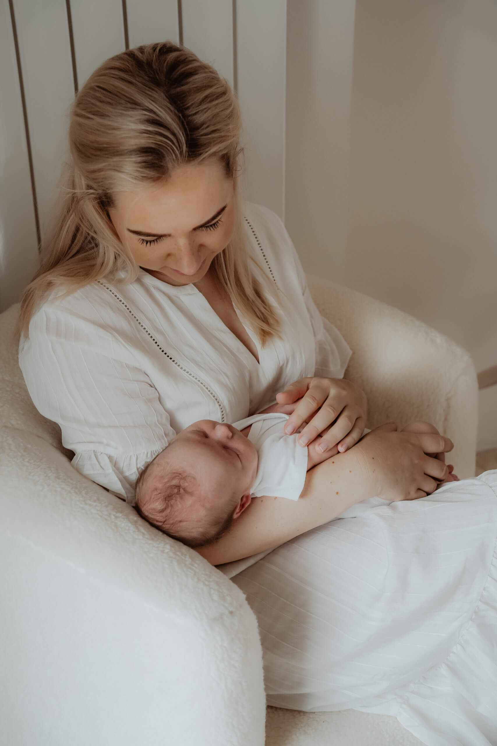 Bij de lifestyle newbornshoot fotografeer ik jullie baby heerlijk in jullie handen. Een prachtige intieme shoot waar knuffelen, kusjes geven op het bed in de slaapkamer, babykamer, mooiste hoekje van de woonkamer en/of voeden centraal staan. Zoals jullie zijn, in het moment en niet geposeerd, genieten in het bijzondere moment, met soms wat aanwijzingen. Een baby laat zich immers niet regisseren. Baby’tjes vinden het heerlijk om geknuffeld te worden dus ik zeg win win situatie.